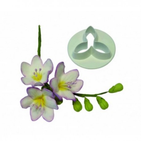 Cutter per la realizzazione di una fresia dal diametro di cm 3,5. Utensile ideale nel cake design ogniqualvolta si vogliano ottenere bouquet per torte nuziali o cupcake, partendo da una base di fondant, gum paste o flower paste